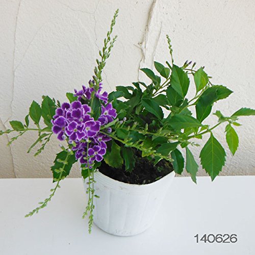 - 鉢植えに人気のデュランタ。 細い枝をたくさん伸ばし、濃いブルーで白覆輪のある美しい花を次々に咲かせます。 夏の暑さに強く、寄せ植え、ハンギングに最適です。