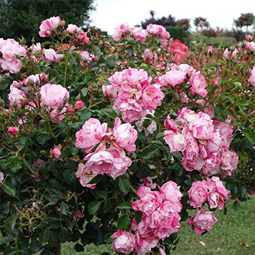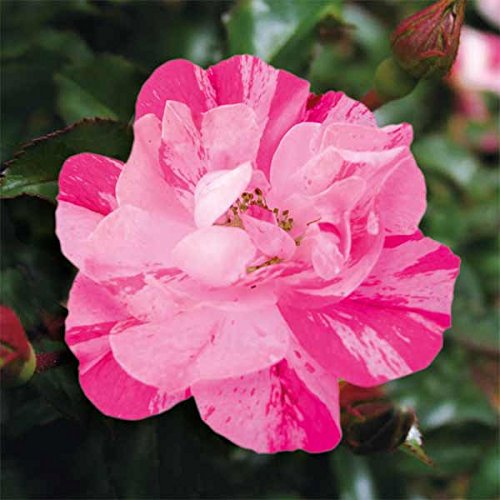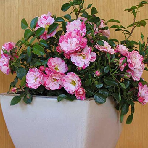 - また乾きにも強く、簡単な管理で春から秋まで長い期間咲き続けます。 この性質は世界的に評価され、国際的なバラの賞を25以上も受賞しています。 四季咲き性で次々と花が咲き、ブッシュ状になった株はたいへん美しく、鉢植え、庭植え、生垣、グランドカバーにもおすすめです。 タイプ:バラ科の耐寒性落葉低木耐寒性:マイナス10度まで花色:ピンクスプラッシュ花形:丸弁平咲き花径:約4cm花房:15~18輪開花期:春~晩秋(四季咲き)樹高:高さ60~80cm、幅1m樹形:横張り株立:叢生葉:光沢あり香り:なし作出年:1994年栽培方法:日当たり、排水の良い場所に植え、早春と晩夏の2回肥料を施してください。