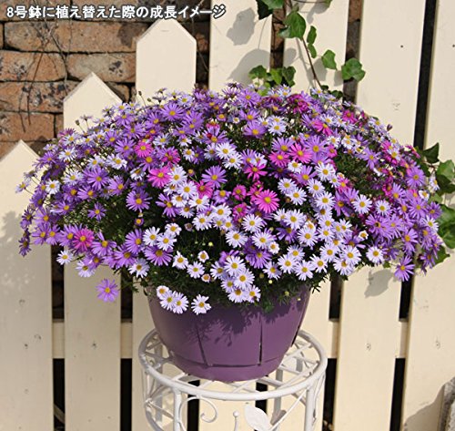 - 1ポットの中に3株が植えこまれているので、そのまま大きめの鉢に植え替えれば、美しい3色植えの寄せ植え鉢になります。 だんだん大株になり、花が増えて、見事な景観となります。 姫小菊は鮮やかな花色のブラキカム。 3色の小さな花がちりばめられた宝石箱のような組み合わせです。 クールホワイト・ローズ・バイオレットの3色ミックスです。