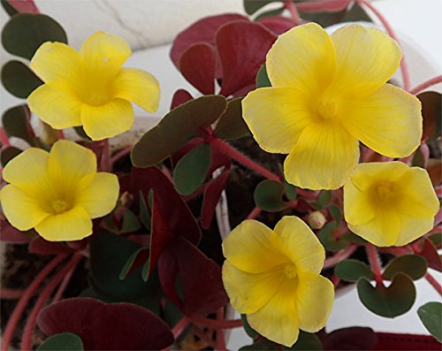 - 表裏の色が異なる赤紫の葉のと黄色の花のコントラストががとても綺麗な品種です。開花期が長く寒さにも強いので、晩秋から冬の花壇・鉢植えでお楽しみいただけます。曇りや雨の日、室内など、日光が当たらない場所では花を閉じてしまうので、必ず日当たりのよい場所で管理してください。タイプ:カタバミ科カタバミ属の球根植物草丈:15~20cm開花期:秋~冬耐寒性:強い霜に当たらない程度用途:鉢植え、庭植え日照:日なた栽培方法:日当たりの良い場所を好みます。強い霜が当たらない戸外で管理してください。土の表面が乾いたら午前中にたっぷり水を与えてください。緩効性の置肥1~2グラムを1か月に1度与えてください。3.5号(直径10.5cm)ポット入りです。