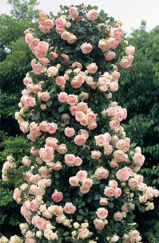 - ピエール・ド・ロンサールはつるバラの人気品種です。クラシカルな花形と繊細な色合いが調和したとても美しいバラ。ボリュームのある大輪花ながら、春は株を包み込むようなすばらしい花付きです。「バラの詩人」と呼ばれた16世紀フランス詩人の名前です。枝が細く、華やかさと品の良さを併せもつ、つるバラの先駆的品種です。2006年世界バラ会連合殿堂入り。返り咲き性。(若木のうちは春のみの開花ですが、3~4年経って株が成熟してくると秋にも咲くようになります)フランス・メイアン・1989年作出。