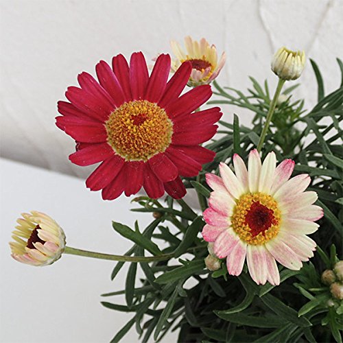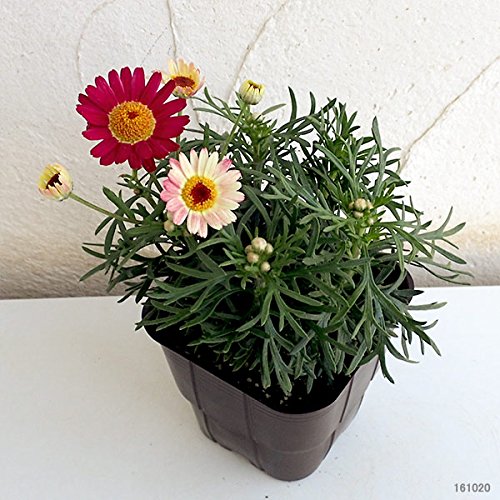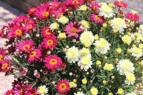 - タイプ:キク科アルギランセマム属の半耐寒性宿根草 栽培適地:関東以西の温暖地域が基準 草丈:30~40cm 株張り:30~40cm 花径:3~5cm 開花期:10~12月、3~6月 植え込み株数目安:丸鉢プランター(直径30cm)1株、横長プランター(長さ65cm)2~3株、花壇(1平方メートル)4~6株 摘芯:不要 切り戻し不要: 花柄摘み:しおれた花をこまめに摘み取ると花つきがよくなります。 日当たり:屋外の日当たりのよい場所に半日以上置いてください。(冬の間は霜や雪を避けた0度以上の場所で育ててください。関東以西の温暖な地域では冬越が可能です。 水やり:土の表面が乾いたら水をたっぷり与えてください。 追肥:1000倍に薄めた液肥を冬は2週間に1回程度、春以降は500倍を1週間に1回程度与えてください。