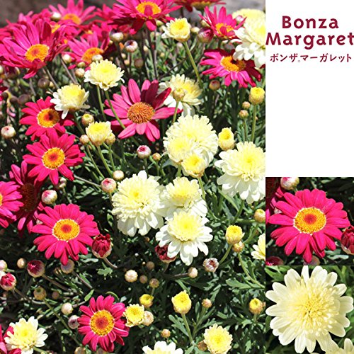 - 世界中で大人気!サントリーのボンザマーガレット。ノーピンチ(剪定なし)でコンパクトにまとまり、花付きもバツグンのマーガレットです。ノーピンチ(剪定なし)でコンパクトにまとまり、花付きバツグンな品種です。 セット内容: ボンザマーガレット:リーフ咲き(一重咲き)チェリー3.5号ポット × 1株 ボンザマーガレット:オペラ咲き(八重咲き)レモンイエロー3.5号ポット × 1株