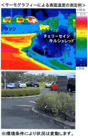 - キルシェレッドは従来のチェリーセージに比べて蒸散量が多いため、蒸散の際に気化熱を奪って温度を下げる効果が高い品種です。また、一酸化窒素や二酸化硫黄など大気汚染物質の吸収能力も優れた品種です。花は大きく、生育中は常に花芽を生じるため、長期間にわたって咲き続けます。