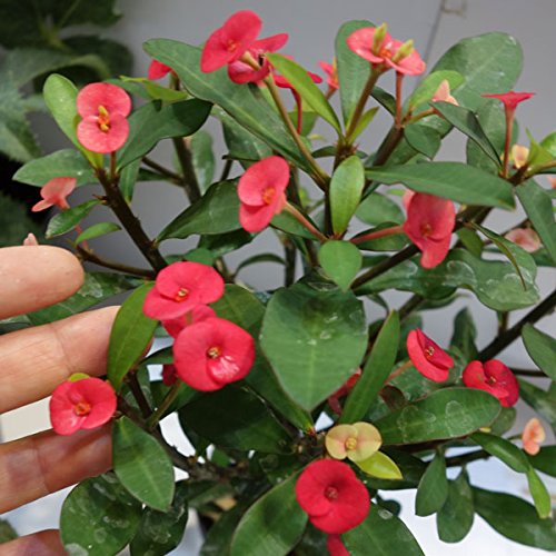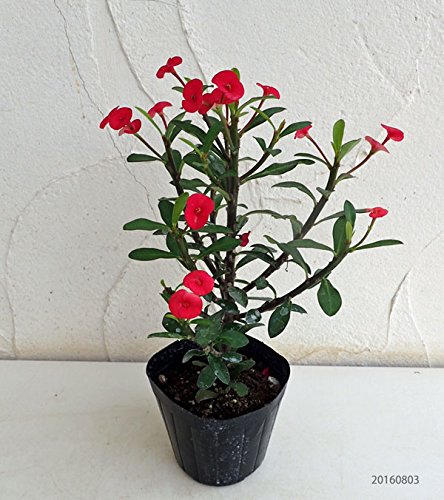 - トゲがないのでチクチクしない画期的な花キリン。丸くて赤い可愛い花が、春から霜が降りる頃までずっと咲き続けます。丈夫な品種で、栽培に手間がかかりません。鉢植えにぴったりです。学名:Euphorbiamiliiタイプ:トウダイグサ科ユーホルビア属の常緑性多年草原産地:マダガスカル島草丈:30~90cm開花期:日中20度以上30度以下夜間15度以上 明るい光が当たれば年間を通じて開花花径:2~3cm用途:鉢植え日照:日なた栽培方法:春から秋までは戸外でも楽しめます。、土の表面が乾いたらたっぷり水をあげてください。冬は週1回、夏は2回程度が目安です。夏期は2ヶ月に1回程度、緩効性肥料を与えてください。成長期以外の時期には肥料を与えないでください。ご注意:枝を切った際に出てくる白い液(樹液)に触れるとかぶれることがありますので、ご注意ください。3.5号(直径10.5cm)ポット入りです。