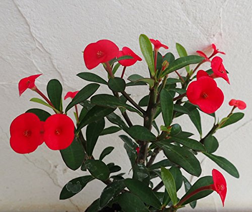 トゲがないのでチクチクしない画期的な花キリン。丸くて赤い可愛い花が、春から霜が降りる頃までずっと咲き続けます。丈夫な品種で、栽培に手間がかかりません。鉢植えにぴったりです。学名:Euphorbiamiliiタイプ:トウダイグサ科ユーホルビア属の常緑性多年草原産地:マダガスカル島草丈:30~90cm開花期:日中20度以上30度以下夜間15度以上 明るい光が当たれば年間を通じて開花花径:2~3cm用途:鉢植え日照:日なた栽培方法:春から秋までは戸外でも楽しめます。、土の表面が乾いたらたっぷり水をあげてください。冬は週1回、夏は2回程度が目安です。夏期は2ヶ月に1回程度、緩効性肥料を与えてください。成長期以外の時期には肥料を与えないでください。ご注意:枝を切った際に出てくる白い液(樹液)に触れるとかぶれることがありますので、ご注意ください。3.5号(直径10.5cm)ポット入りです。