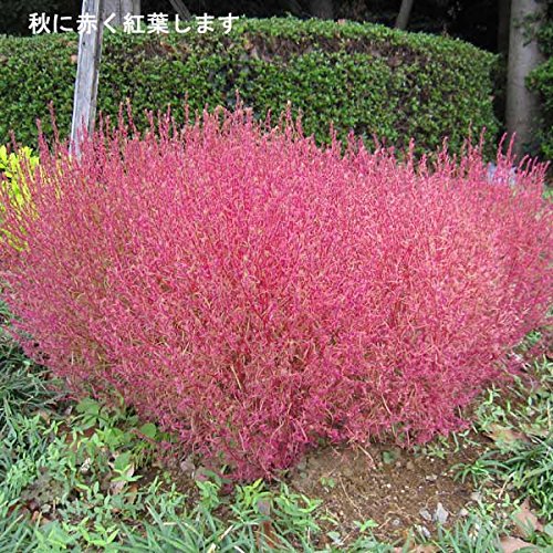 - コキアは「箒木」「箒草」とも呼ばれ、花壇の縁取りや生垣に用いられる草丈1mぐらいの1年草です。強健で、細い枝を密生させて自然に卵型の草姿になります。夏には緑で涼しげな茎葉を茂らせ、秋にはきれいなピンク色に紅葉します。9月上~中旬に地際から刈り取り、軒下などに逆さに吊るして乾燥させればほうきを作ることができます。また、熟した実は食用になり、「とんぶり」として知られています。 タイプ:アカザ科ホウキギ属の非耐寒性1年草 草丈:40~60cm 日照:日向むき 栽培方法: 強健で土質は選びません。よく日のあたる場所に30~40cm間隔で植えつけます。生育期間中に月1回程度液肥を施してください。 6月~7月頃に1、2回刈り込むと枝が密生します。 一度植えると翌年からはこぼれ種で自然発生するほど強健です。 5号(直径15cm)鉢入りです。★10月以降は紅葉がはじまりかけた状態でお届けとなる場合があります★ ※写真はイメージです。