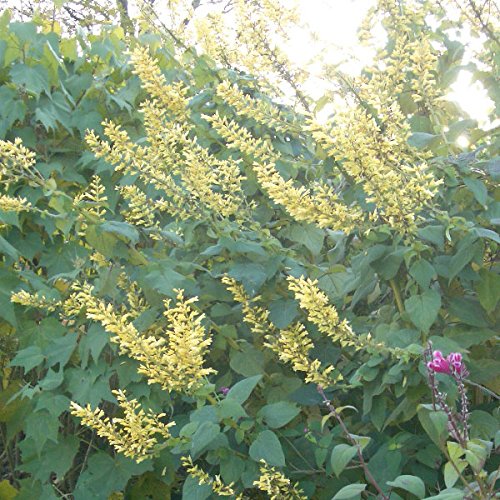 - インパクトのある黄色の花を咲かせる大型のサルビアです。草丈は2m位にまでなり、秋咲き性、霜が降りるまで美しい花を咲かせてくれます。初夏に切り戻して側芽を促すと花数も増え、草姿もまとまりやすくなります。