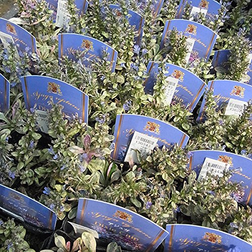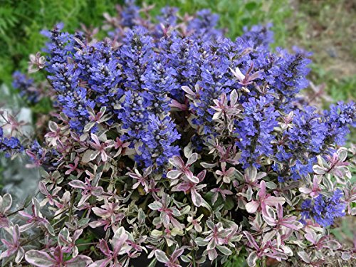 ディクシーチップは、グレーがかかった緑葉にクリーム色の斑が入り、新葉はパープルピンクがかった色合いになるトリカラータイプの葉色。 花はさわやかな青紫色です。 アジュガは最もポピュラーなグランドカバー素材のひとつ。 常緑で横に広がりながら育ち、日向から半日陰で元気に育ちます。 耐寒性も強く、病虫害もないので、一度植えれば手間要らずです。 やせた土地でもどんどん増えるのも魅力です。 そして、春には地面が覆われるほどたくさん、美しいパープルの花を咲かせます。