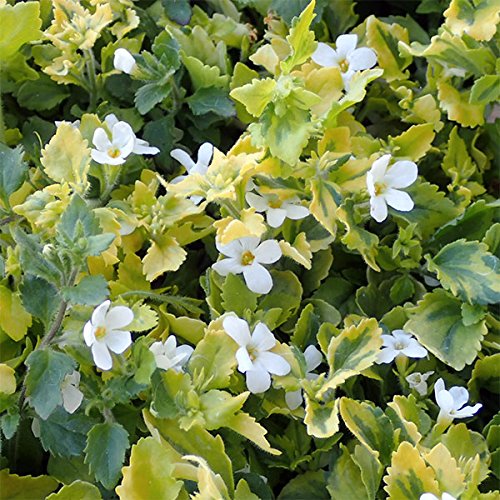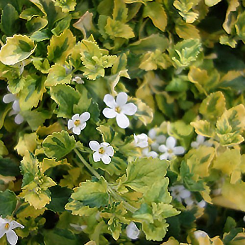 丈夫で花付きの良いステラ(バコパ)。可愛い小花があふれるように咲き、早春から初夏、秋から冬にかけてたくさんの花がつきます。美しいライムイエローの斑入り葉なので、カラーリーフとして寄せ植えなどにおすすめ!花がない季節も楽しめます。草姿は半這性で、生育旺盛です。ハンギングバスケットにおすすめです。