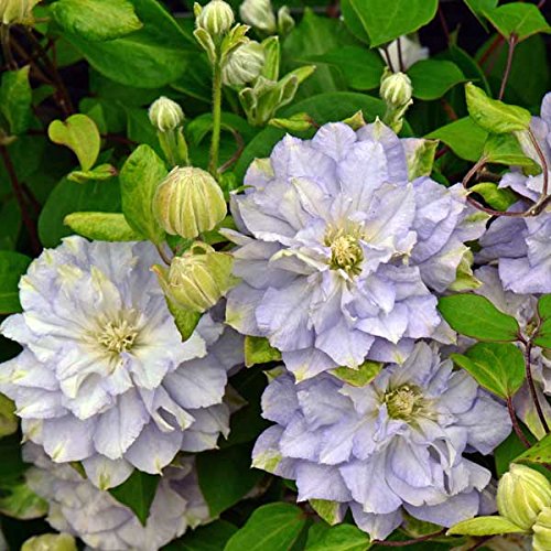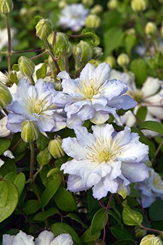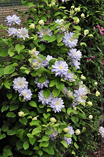 - 栽培方法: 根が下に伸びますので、植えつけは5号(直径15cm)以上の深鉢を用いてください。植えつけの際は根鉢をくずさないように深植え(地上部の1~2節が土に埋まるように)してください。後ろにトレリスを立て、つるを誘引してビニールタイなどで固定します。施肥により花芽が形成されますので、立派な花を咲かせるためにはクレマチス専用肥料などを1~2ヶ月に1回与えます。水遣りは鉢の表面が乾いたらたっぷりと与えます。クレマチスは水を好みますので、庭植えの場合も春~夏は最低週に一度は水遣りしてください。 詳しくは クレマチスの栽培方法 (Amazonでは 'クレマチスの栽培方法' へのリンクは掲載されません) をご覧ください。