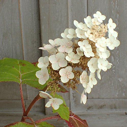 - 庭植え・鉢植えに人気の柏葉アジサイ。 柏に似た切れこみの入った葉と、真っ白な長い房状の花が美しく、半日陰でもよく育ちきれいな花を咲かせてくれますので、シェードガーデンに最適です。 または、大き目の鉢やコンテナでも栽培できます。 晩秋には赤銅色の美しい紅葉が楽しめます。 バックポーチは一重咲きの品種。 咲きはじめは白色ですが、咲き進むとピンク色に変化します。