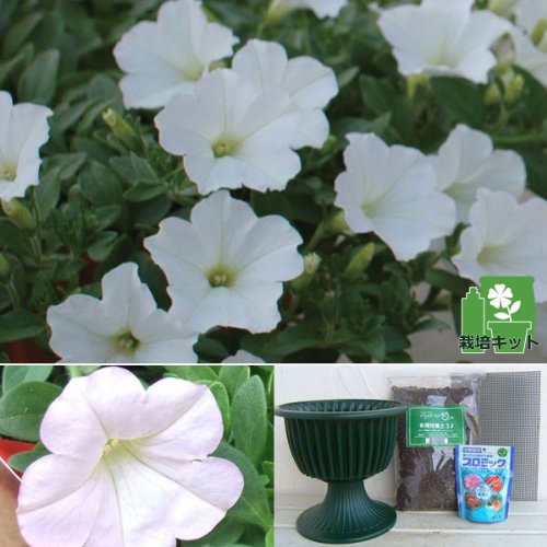 【ノーブランド品】ランドスケープペチュニア:お雪ちゃんと鉢と土と苗のセット