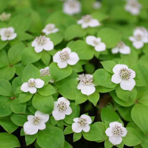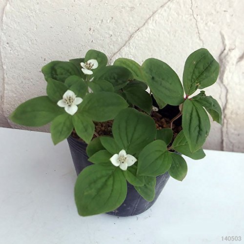 春に白い4弁花の花を咲かせ、秋には美しい赤い果実をつけます。この果実は食用にもなります。小鳥などもこの実を求めてやってきます。本州中部以北の亜高山帯に分布していて、針葉樹林の下に生える植物です。ミズキ科ですのでハナミズキやヤマボウシなどと同じ仲間となり、白い花弁に見える部分は本当の花弁ではなく総苞片と呼ばれる部位で本当の花はその中の中心部分となります。写真は開花・成長時のイメージですが、お届けの際は苗の状態です。タイプ:ミズキ科ミズキ属耐寒性多年草草丈:5~15cm開花期:5月頃日照:半日陰冬の状態:半落葉植え替え頻度:1~2年に1回植え替え適期:秋~3月栽培方法:樹木の木陰になるような直射日光が当たらない場所がおすすめです。排水のよい用土に植え、月に1~2回位少量施肥してください。水やりの頻度は通常よりも若干多めがよいです。