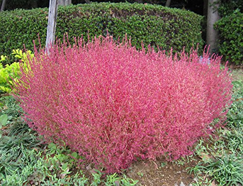 - コキアは「箒木」「箒草」とも呼ばれ、花壇の縁取りや生垣に用いられる草丈1mぐらいの1年草です。強健で、細い枝を密生させて自然に卵型の草姿になります。夏には緑で涼しげな茎葉を茂らせ、秋にはきれいなピンク色に紅葉します。9月上~中旬に地際から刈り取り、軒下などに逆さに吊るして乾燥させればほうきを作ることができます。また、熟した実は食用になり、「とんぶり」として知られています。 タイプ:アカザ科ホウキギ属の非耐寒性1年草 草丈:40~150cm 日照:日向むき 栽培方法: 強健で土質は選びません。よく日のあたる場所に30~40cm間隔で植えつけます。生育期間中に月1回程度液肥を施してください。 6月~7月頃に1、2回刈り込むと枝が密生します。 一度植えると翌年からはこぼれ種で自然発生するほど強健です。 写真は成長時のイメージです。お届け時は苗の状態です。 紅葉時の色