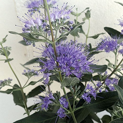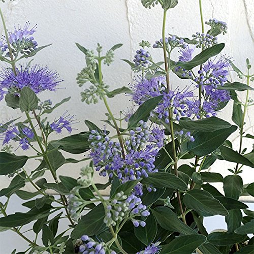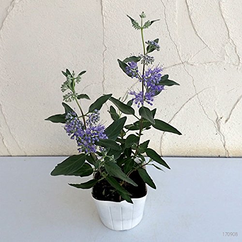 - グランブルーは他のカリオプテリスよりも濃い青色の美しい花を咲かせる品種です。カリオプテリスは花式部(ハナシキブ)とも呼ばれるダンギクの近縁種で、小さな集合花を段状につけます。耐寒性・耐暑性が強く育て安い品種です。花壇、鉢植え、切花に向きます。タイプ:クマツヅラ科落葉低木開花期:5~10月草丈:60~100cm日照:日なた栽培方法:日当たり、水はけの良い場所が適していますが、乾燥にはあまり強くありません。マルチングで乾燥を防いでください。落葉低木ですがそれほど耐寒性はそれほどありません。なるべく霜の当たらない環境での冬越しをおすすめいたします。肥料は緩効性肥料を時々与える程度であまり多肥にしないようにします。特に窒素分が多いとうまく生育できないことがあります。その年に伸びた枝に花をつけるので、剪定は、冬芽が膨らんで来る春先あたりにやや強く切り戻します。3.5号(直径10.5cm)ポット植えです。写真は成長・開花時のイメージですが、お届けの際はまだ苗ですのでご了承ください。