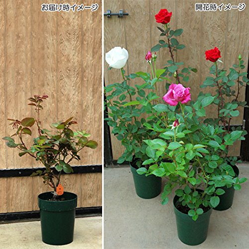 - 3月から11月はうどん粉病やアブラムシなどがよく発生しますので、薬剤で防除してください。 剪定は12月から1月に行います。 詳しくはバラの植え方とお手入れ(モダンローズ)(Amazonでは'バラの植え方とお手入れ(モダンローズ)'へのリンクは掲載されません)をご覧ください。 6号プラ鉢植えの接木大苗を、秋の開花に合わせて仕立てた株です。 お届け時は枝葉の状態ですが、やがて蕾が出て10月上旬~下旬に(品種により異なります)開花する予定です。 写真は成長・開花時のイメージです。 バラの花色・花形は気候生育環境により変化します。 植えつけた初年や株の充実度の弱いものは、花弁数が少なく花形も変化します。
