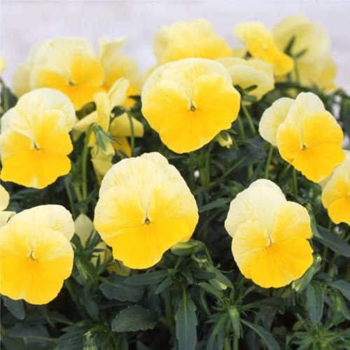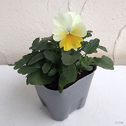 レモネードは、黄色地に上弁が白く抜けます。 ビーコンイエローに似た花色です。 色幅があります。 「よく咲くスミレ」はサカタのタネ育成の中~小輪パンジーです。 パンジーのように華やかでビオラのようにたくさん花を咲かせます。 これまでのパンジーは、冬になると(低温短日期になると)花が付きにくく花数が減ってしまいがちですが、このシリーズは冬季でも花上がりがよく、そしてもちろん春まで長く咲き続けます。 また、コンパクトにまとまりやすく気温が上昇してくる春になっても伸びすぎず草姿が乱れにくいので寄せ植え材料としてもおすすめです。