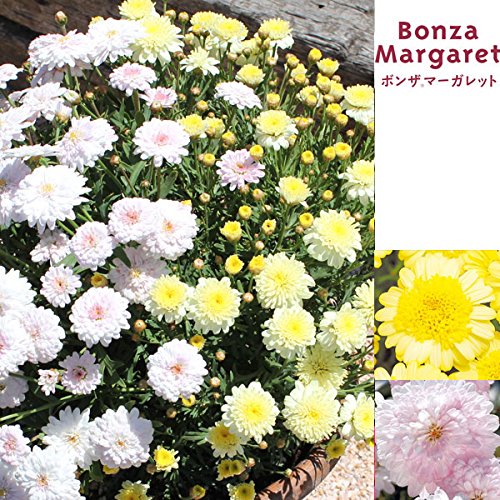 - 世界中で大人気!サントリーのボンザマーガレット。 ノーピンチ(剪定なし)でコンパクトにまとまり、花付きもバツグンのマーガレットです。 ノーピンチ(剪定なし)でコンパクトにまとまり、花付きバツグンな品種です。 セット内容:ボンザマーガレット:オペラ咲き(八重咲き)サクラ3.5号ポット×1株ボンザマーガレット:ウルル咲き(アネモネ咲き)イエロー3.5号ポット×1株栽培方法:日当たり、水はけのよい場所に腐葉土や緩効性肥料をすきこんで植え付けてください。 土の表面が乾いたら水を与えるようにしてください。 咲き終わった花は花柄ごとにつみとるとたくさんつぼみがつきます。 寒さ(0度以上)には少し弱いので、冬季は鉢植えにして南側の軒下や室内にとりこんでください。