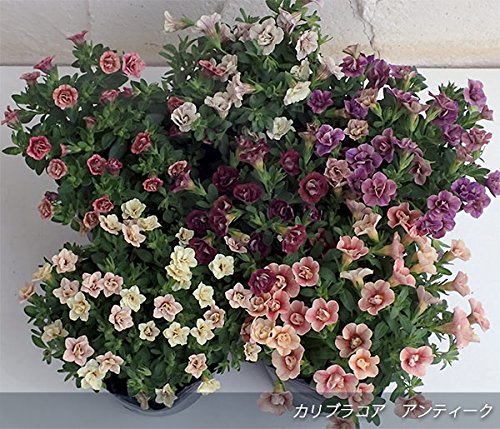 - 寄せ植えやハンギングバスケット、ギャザリングに大人気!シックなアンティークカラーのカリブラコアです。 落ち着いた色合いで微妙なニュアンスカラーの花は、従来の原色系のカリブラコアとは全く違う雰囲気。 病気に強く、美しい花が春~晩秋まで切れ目なく開花します。 小輪多花性のペチュニアに似ていますが、花径は2cm程度でより可憐です。 開花期間の長さ、抜群の開花継続性でも魅力。 可愛いけれど大人っぽい花は、たくさん咲いても賑やかになりすぎず、美しい景観をつくります。