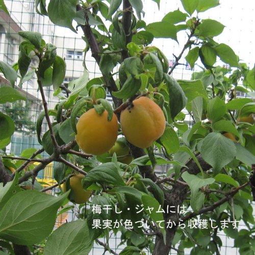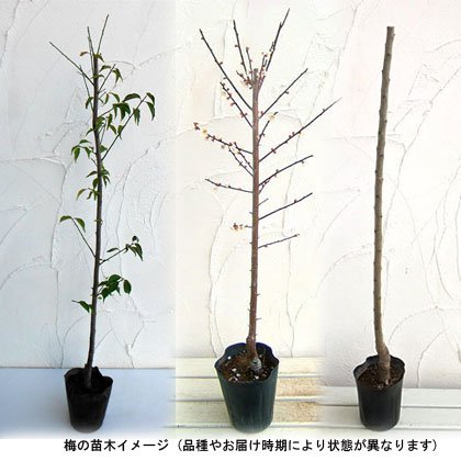 - 黒い斑点がついても食用にして問題はありません。 ・収穫・利用法:5月半ばから、青梅を梅酒用に収穫します。 梅干用には、梅雨の雨に当たった頃の、少し黄色く熟しかけた状態で収穫すると、柔らかな梅干になります。 サイズ:4~5号(直径12~15cm)ポット入りの接木苗、結実までの年数は3~4年です。