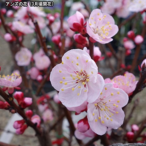 - 甘くておいしい、生食用アンズの苗木2品種セットです。アンズはバラ科サクラ属の落葉樹。果実の酸味が強く加工用の東亜系と、果実の酸味が少なく生食・加工に使われる欧州系があります。甘酸っぱい実は熟したものを生食するとことのほかおいしく、また干しアンズ、ジャムやシロップ煮に加工されます。クエン酸、リンゴ酸やブドウ糖、ビタミンB1、Cなどが豊富に含まれている健康フルーツです。桃の花に似た薄いピンクの花も美しく、観賞価値があります。