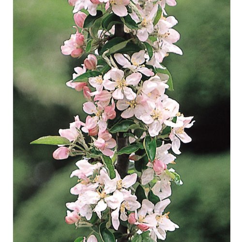 - バレリーナツリーはユニークな姫リンゴ。お庭のシンボルツリーとして人気です。横枝があまり伸びず、花も果実も幹の周りに密生します。60cm四方のスペースがあれば栽培でき、鉢植えでも育てられます。木が大きくなると枝が斜め上方に伸びて細い箒型になります。春には赤く美しい花が咲き、秋には赤い実を実らせて、長期間楽しめます。お庭のワンポイントとして1本植えたり、数本並べても素敵です。自家結実性があるので1本だけでも実をつけますが、他品種を近くに植えていただくと収穫量を増やすことができます。