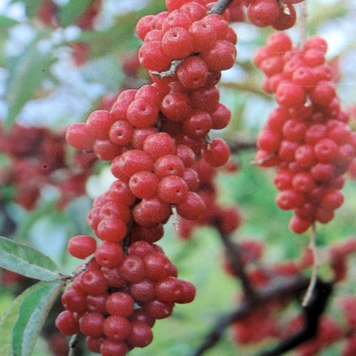 - タイプ:グミ科の耐寒性落葉樹 栽培適地:北海道南部以南 樹高:2~4m 開花期:5~6月 成熟期:9月~11月 日照:日向むき