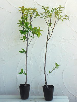 - お届けするのは、4~5号(直径12~15cm)ポット入りの接木苗各1本ずつの計2本です。結実までの年数は約3~4年です。 樹高は、お届け時期により多少前後します。