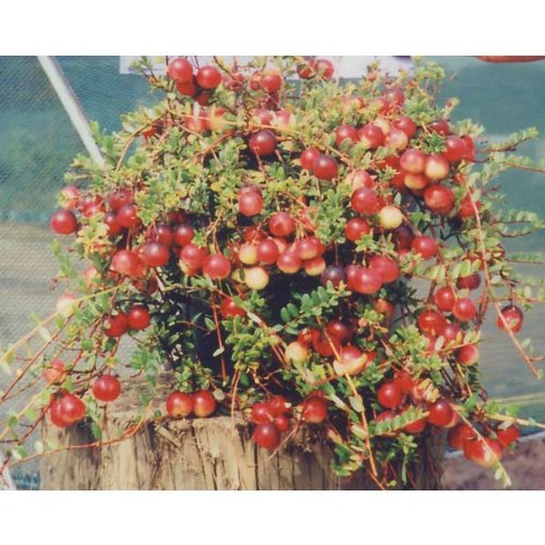 クランベリー(つるこけもも)の園芸品種。バーグマンは分枝力が強く、豊富な実付きが特徴です。果実の大きさは100円玉大ととても大実で、生食、ジャムや果実酒などの加工に利用できます。また、小苗からでも1年で1m近く伸びる長いつるに赤い実がびっしりとつく様子は観賞用にもすばらしく、ハンギングやグランドカバー用としてもおすすめです。クランベリーは冷涼な気候と酸性土を好みますが、この品種は暖地でも実がつくので暖かい地域での栽培におすすめです。