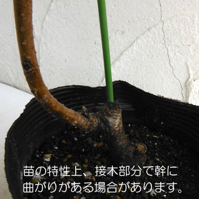 - 樹形や樹高につきましては入荷時期により多少変動いたします。 品種特性上、樹形に曲がりなどがある場合がございます。 本格的な開花・結実は翌年以降からとなります。 冬季は落葉状態でのお届けです。 また春~夏以降のお届けは葉や幹などに焼けや変色、虫食い跡、落葉などが見られる場合がございますのでご了承ください。 写真は成長・開花時のイメージです。 お届け時期により開花後となる場合がございます。 ※苗についているラベルは定形のラベル「水密」などとなっている場合があります。