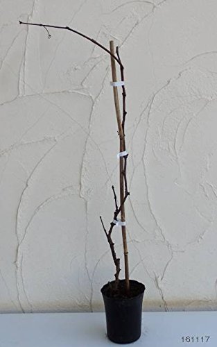 - チッソ肥料が多すぎると葉ばかり茂って実がつきにくいのでご注意ください。 開花数日前の6月下旬に花房を整理します。 開花終了後10~14日で摘房をして葉5~8枚あたり1花房にします。 摘房後は込んでいる部分の果実を取り除く摘粒をします。 少なめにしたほうが順調に生育します。 花後に結実した実には袋かけをして、病虫害や鳥害から守ります。 収穫期になったら熟した果房から順に収穫します。 剪定は12月~1月に、前年に伸びた新梢を2~3芽残して切り戻してください。 落ち葉や剪定枝などを根元に残すと病気の原因となりますので、清潔に保ってください。 お届けする苗は4~5号(直径12~15cm)ポット入りの挿木苗です。