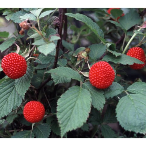 樹姿がたいへんコンパクトにまとまる木苺です。鉢植えやテラコッタで場所をとらずとても気軽に育てられます。6月には赤く熟す果実は愛らしく、鑑賞はもちろん食用としてもお楽しみいただけます。デザートにちょっと飾るいろどりもよく、ティータイムが楽しくなります。タイプ:耐寒性落葉低木開花期:4~5月収穫期:7~9月日照:日向むき栽培方法地植えは高さ、深さともに30cmくらい掘り、堆肥かピートモス、元肥として速効性の化成肥料を施して植えます。鉢植えは赤玉土6、腐葉土3、川砂1を用い、固形肥料を5~6個埋め込みます。2年後に植え替えます。自家受粉しますが、花付きが少なかったり、受粉時期に雨などで花粉が飛ばなかったりすると実付きが少なくなる場合がございます。その場合は株を大きく育て花付きをよくし、人口受粉をするとよく実がつきます。3~3.5号(直径9~10.5cm)ポット入り、樹高約15~30cmの苗です。樹高につきましては、お届け時期により多少前後することがあります。夏以降は葉がきれいでない状態の場合がございますのでご了承くださいませ。写真は結実時のイメージです。
