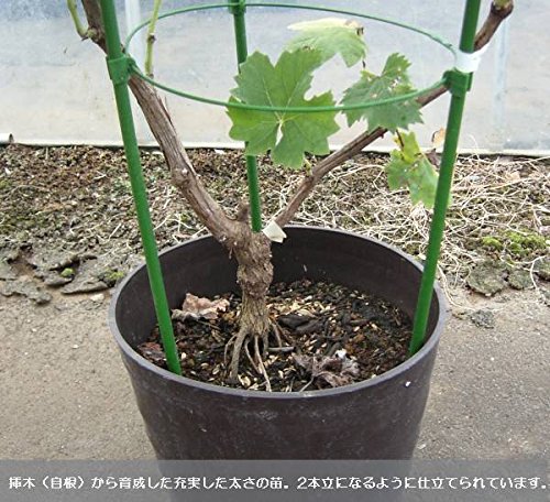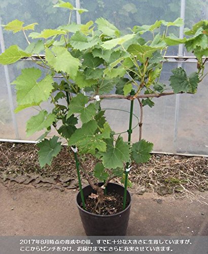 - 病害虫に強く貯蔵性に優れ、裂果もほとんどないため、外観のよい高級感があり、将来性が期待される品種です。 ストレプトマイシン+ジベレリンで無核生産可能です。 タイプ:ブドウ科の耐寒性落葉樹(つる性)果皮色:黄緑色果重:10g糖度:17~20度肉質:崩壊果形:短楕円成熟期:8月中旬~9月中旬日照:日向むき栽培方法:日当たり・水はけのよい場所が適しています。 地植えをする場合はなるべく深く穴を掘り、有機肥料を元肥えとして施して植え付けます。 鉢栽培の場合、お届けした鉢のまま育てられますが、生育が良いため、1年後を目途に10号くらいの大きな鉢への植え替えがおすすめです。 肥料は3月と11~12月に、根元に有機肥料などを施します。 地植えの場合は、翌年の生育期に苗がより充実するように生育するため、実はつかない可能性がありますが、鉢植えの場合は翌年に結実する可能性があります。 その場合でも実は一房くらいになるように留めて摘果し、苗の充実を図るとその後の生育がよいでしょう。
