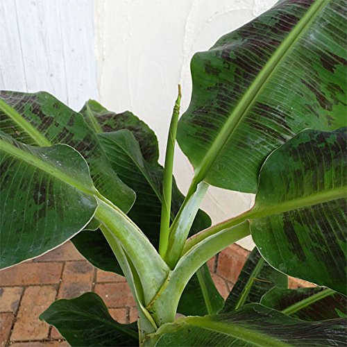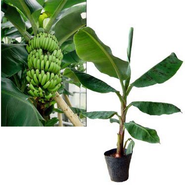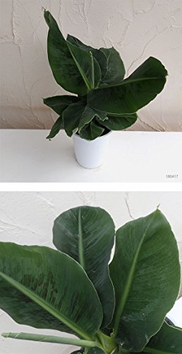 - わい性で実がなる食用のバナナです。観葉植物としてもインパクトのある株姿です。非耐寒性の常緑多年草で冬季は温室や暖房のある室内の南側の窓辺などで管理し保温する必要がありますが、最大2~3mほどに成長します。植え付け後1~2年で開花。結実しはじめます。学名:MusaacuminataDwarfCavendishタイプ:バショウ科の非耐寒性常緑性熱帯果樹日照:日なた向き栽培方法:高温と日向でよく育ちます。6号以上の鉢に植え付け、成長に応じて10号前後の大きな鉢に植え替えます。肥沃で腐植に富んだ湿り気のある土壌で育てます。水と肥料を好むので、春~秋の生育期は戸外の日当たりのよい場所で、十分に水やりし、また週1度液肥で追肥しながら育ててください。およそ1年~1年半で開花・結実します。冬は水と肥料を控えめにします。冬越しは5~10℃以上必要なので、室内の明るい場所にとりこみます。一度花が咲いた偽茎には二度と咲かないので、開花後に、株元にできる子孫を分けて鉢植えにしてください。6号(直径18cm)鉢植え、鉢底からの高さ約50cmです。※写真はイメージです。