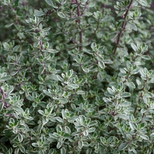 白い斑入りの葉が美しいタイムです。白い葉、白い花ばかり集めたホワイトガーデンに加えてもよいですね。半ほふく性なので、寄せ植えの前面に植えると少し垂れるようになってきれいです。夏に薄いピンクの花を咲かせ、秋には紫をうっすらとかけたように紅葉します。園芸用、ハーブティ用、お料理用にお使いください。やわらかいレモンの香りがします。<育て方>日当たりのよい、乾いたところを好みます。水はけのよい軽い土に植えてください。枝分かれした茎は木質化します。摘芯しながらこんもりと育てます。取り木、挿し木で増やせます。<収穫>いつでも摘み取って利用します。生葉のままハーブティなどに使っても、また、乾燥して保存しておいてもよいです。花が咲いたら思い切って短く切り、葉を乾燥しておけばいつでも利用できて便利です。写真は成長時(開花時)のイメージですが、お届けの際はまだ苗の状態です。お届け時の苗姿は個体差があります。表示の写真と異なることがありますので、ご了承ください。使用農薬(有効成分):使用していません。生産地:宮城県