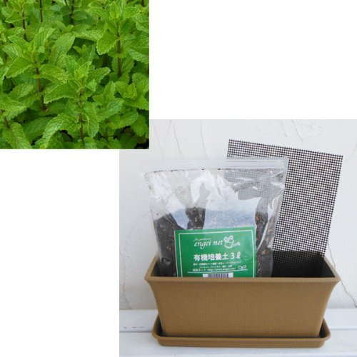 ミニプランターで手軽にハーブを育ててみませんか?初めての方にも簡単に育てられる栽培キットです。 受け皿つきなので、室内の明るい窓辺や水をこぼしたくないベランダにぴったりです。 ハーブの苗を植え込んで、すぐにスタートできます。 大きくなってきたら少しずつ摘み取ってお料理などに利用します。 幅32cmの小型プランターなので、狭いスペースにも置けますし、見た目もGOOD!床を汚さない水受け皿付きなので、室内でも日当たりのよい窓辺なら栽培できます。 さわやかな風味のミントのセットです。 日光の差し込む明るい窓辺で栽培してくださいね。 セット内容: ミント:スペアミント3号ポット × 2株 ステッチプランター32型:ブラウン × 1個 S:ステッチプレート(ステッチプランター32型用):ブラウン × 1個 園芸ネットオリジナル培養土3リットル入り × 1袋 鉢底ネット(20×30cm) × 1枚 必要な道具:ハンドショベル、小さいジョウロ(またはスプレー)、新聞紙など(植え付けの際に床を汚さないようシートになるもの) 栽培方法: