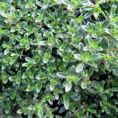★小さい苗となります。グランドカバー用の改良品種。匍匐性。非常に細かい葉が地面を覆って広がり、とてもきれいです。踏み締めに強いので芝生代わりにたいへんおすすめです。踏みこむとタイム特有の良い香りがし、また淡いピンクの花も咲かせます。