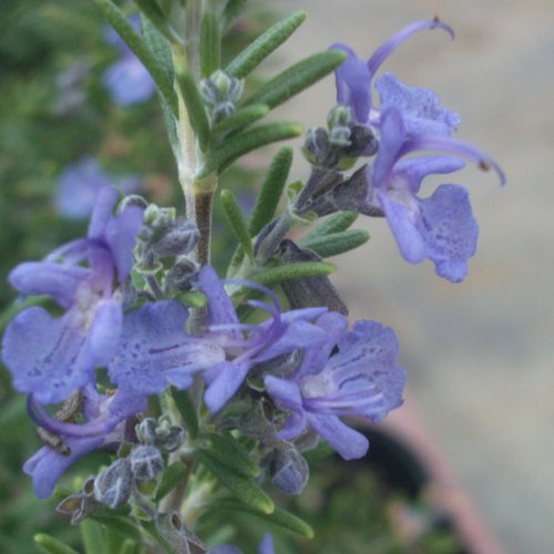 半ほふく性のローズマリーで、最も濃い紫花。 大きめな鉢で栽培すると開花時に見事です。 ハンギングバスケットにも適しています。 弱耐寒性(―10度まで)なので、鉢植えで冬は軒下など、寒風のあたらない場所においてください。 学名:Rosmarinusofficinalis'MozartBlue'タイプ:シソ科マンネンロウ属の半耐寒性常緑低木開花期:秋から翌春にかけて草丈:50~200cm仕立て方:鉢植え、コンテナ、花壇育て方:日当たりの良い、水はけがよく乾燥気味のやせた軽い土を好みます。