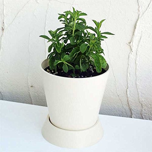[そのまま楽しめるハーブ鉢植え]ステビア BKFアイボリー4号ポット(鉢皿付き) ノーブランド品