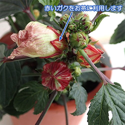 - 油粕などの有機質肥料を2ヶ月に1回位を施します。 特に初夏より生育が旺盛になるので、肥料不足にならないようにします。 また、草丈が高くなってきますと折れやすくなるので支柱を立ててください。 酸性土に弱いので、雨の多いときには石灰などで酸性を中和してください。 真夏は地温が上がるので遮光し涼しく管理します。 収穫・利用方法:利用部分は成熟した果実(赤く色づいたガク片や総苞片)で、天日干しにしてよく乾燥させ、細かくちぎって熱湯を注ぎ5分ほどで真紅のティーを楽しめます。 5号(直径15cm)鉢入りです。