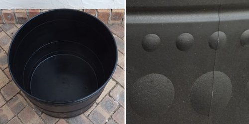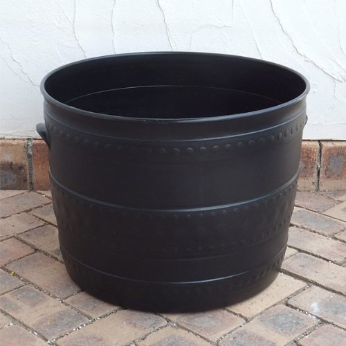 - 英国のガーデニング用品メーカー、Stewart社製のプラスチック製多目的栽培容器です。黒いガンメタルカラーの木製タブ風デザインはどんな植物にもマッチします。安定性が高く、土がたっぷり入る寸胴型なので、野菜や花木・果樹の栽培にも最適。もちろん草花やハーブを植えてもOKです。お値段もお手ごろです。★底穴はありません★ 全体のサイズ:直径51cm、高さ39cm、内径49.5cm 土容量:50リットル 素材:プラスチック製 鉢カバーとしても利用できるよう、底穴のない仕様となっています。また、お手持ちのドリルやキリなどで穴を開けていただくことも可能です。