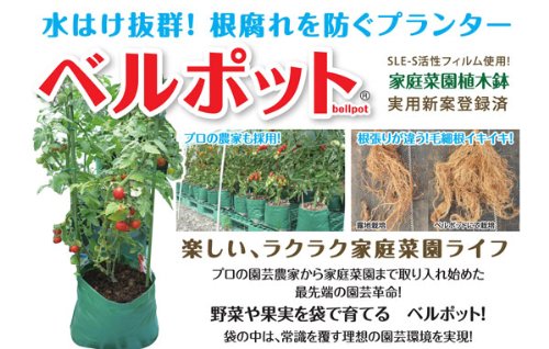 - 水はけ抜群!根腐れを防ぐプランター 近年の家庭菜園ブームで各種の鉢・プランターが発売されています。 従来の家庭栽培ではポット選び・水やり・温度管理がとても難しいとされてきました。 ベルポットはそれらの問題を解決し開発された快適な家庭菜園を楽しめるポットです。