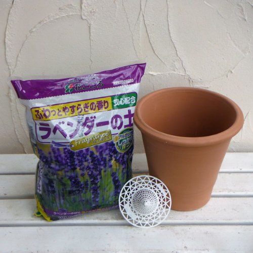 ラベンダー植え込みセット大株用(鉢・専用用土・鉢底ネット)[7号サイズ テラコッタ] ノーブランド品