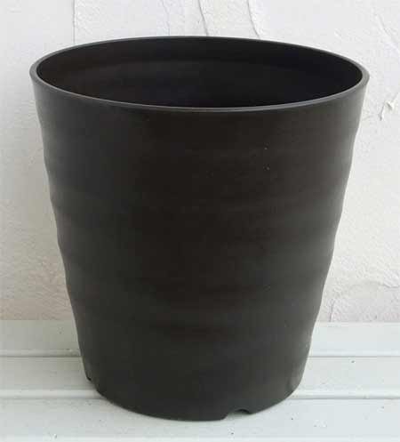 - 素焼き鉢のようなデザインのプラスチック鉢。マットな質感で置き場所や植物は和風洋風共にマッチします。深さがあるので土がたっぷり入り、水はけと通気性の高い上げ形状は、果樹やバラの植え込みにもオススメです。サイズ:直径27cm、高さ27cm土容量:10リットル色:ダークブラウン材質:ポリプロピレン底穴あり 植物はイメージです。