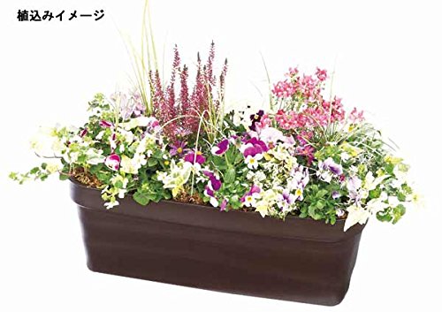 素焼き鉢のようなデザインのプラスチック鉢。マットな質感で置き場所や植物は和風洋風共にマッチします。排水穴をポリ栓(スノコに付属)で塞ぐことで貯水スペースができ、水枯れを防止することができます。 サイズ:長さ40cm、奥行き15cm、高さ14cm 土容量:4リットル 色:ダークブラウン 材質:ポリプロピレン 底穴あり スノコ付き 植物はイメージです。