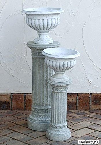PSとは、ポリストーン(樹脂と石粉を混ぜ合わせた素材)のこと。硬度が高く、アンティークなヨーロッパのデザインが細部までリアルに表現され、どっしりとした独特の質感を持った製品です。PS花台はコラム(円柱)状の花台。鉢花を乗せるとすてきです。