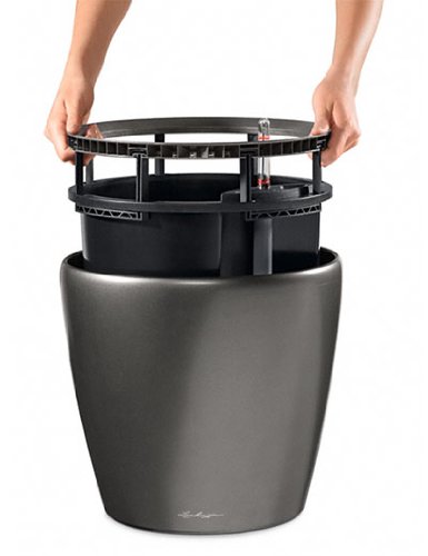 レチューザ(Lechuza)はドイツ・プレイモビル社製のモダンで堅牢な樹脂鉢です。グレードの高いスタイリッシュなデザインと質感を持ち、軽量で非常に丈夫で、紫外線や衝撃に強く、外気による変色や冬の霜にも耐久性があります。 そのうえ、通気性に勝れた底面潅水システムがついているので、水遣りの手間を省き植物の根を健全に育てることができます。残水量もひと目でわかりますので、水管理も楽です。 鉢には栽培に必要な資材一式が付属していますので、あとは用土と植物をご用意いただくだけです。セラミスでも栽培できますが、普通の培養土で植え込み可能、大変経済的です。また、観葉に限らず、お好みの植物を植えていただくことが可能です。