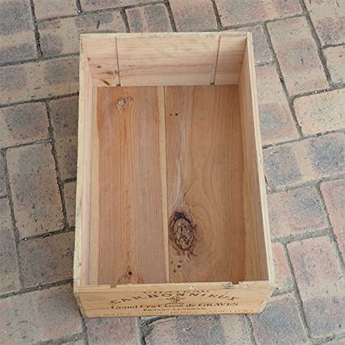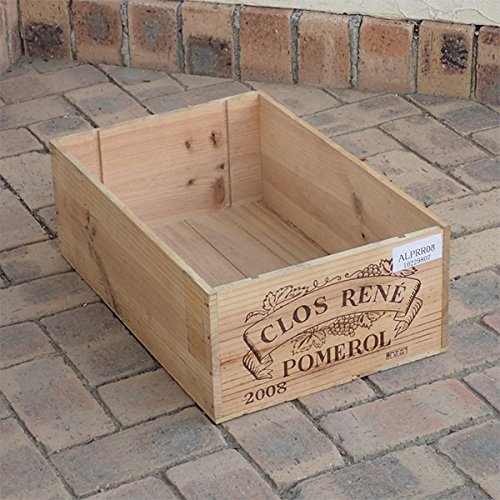 - 輸入ワインの使用済み木箱です。側面に醸造元のワイナリーのロゴやアルファベットの焼き印が入った長方形の木箱で、おしゃれな雰囲気が楽しめます。装飾や物入れ、鉢・プランターのカバーなどに好評です。大きさが統一されているので、横に並べたり、積み上げて棚のように使ったりすることもでき、便利です。ただ、もともとワイン運搬用に作られたものなので、直接土を入れて植物を長期にわたって栽培すると、土の水分などで板が反り返ったり、黒ずんだりします。土を入れる場合は、ビニールシートなどを内部に敷いてご利用いただけば、耐久性が高まります。ただし防腐塗料などは施されていませんので、ある程度の期間が過ぎると傷んできますのでご了承ください。実際に輸入に使われた箱なので、多少傷みやかけ、汚れ、木材の節や節穴、手書きのサインなどがあります。ロゴやアルファベットなど側面のデザインは様々ですが、見計らいでお届けしますのでご了承ください。