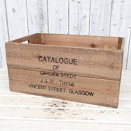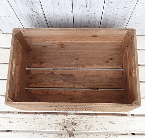 - ガーデニングやデコレーション用に人気となっている、アンティーク風の木箱です。ヨーロッパで使われた古い木箱を模した製品で、味わいのある色合いと質感があります。庭において鉢花を飾ったり、道具入れや土入れに。横に倒して何個かを積み上げれば棚やテーブルのようにも使えます。壁に取り付けてデコレーションボックスにして花を飾るのもすてきです。天然木で作られているので、直接土を入れて植物を栽培すると、板が反り返ったり黒ずんだりします。土を入れる場合は、ビニールシートを内部に敷いてご利用いただけば、耐久性が高まります。防腐塗料は施されていませんので、ある程度の期間が過ぎると傷んできますのでご了承ください。アンティーク仕上げを施しているため、木材のキズや節、かけ、色目のムラなどがありますが、これらも味わいのうちとご理解ください。サイズ:縦53cm×横33cm×高さ25cm(やや個体差があります)材質:木製中国製※写真はイメージです。
